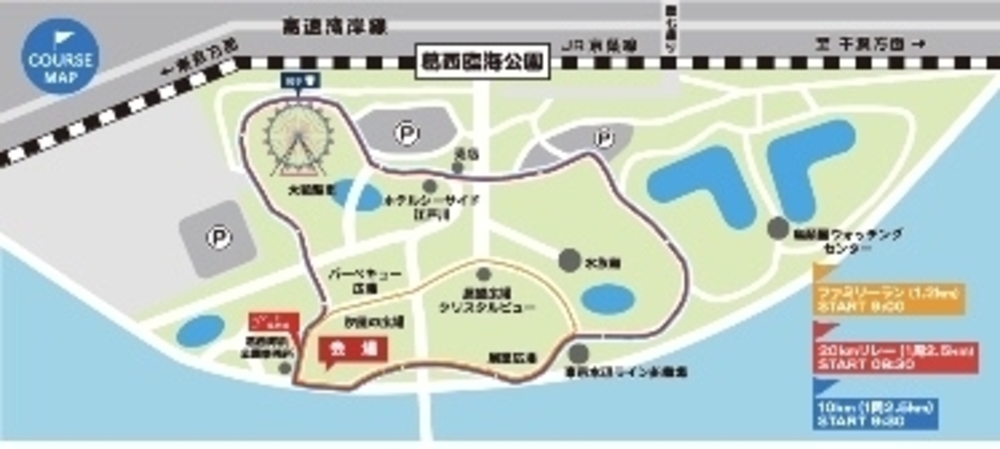 汐風の広場前の停留所からスタートし1周2.5キロのコースです。