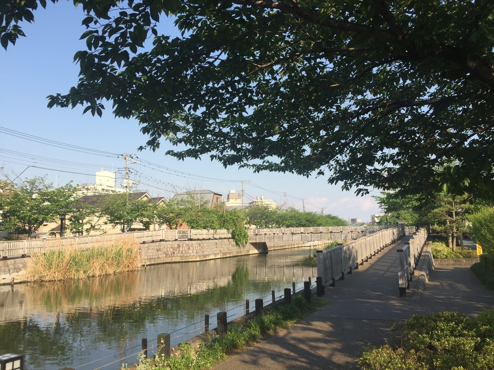 新川は、荒川・中川と旧江戸川を結び、徳川家康の時代に造られた運河です。昔は船堀川と呼ばれ、東北や北関東、房総と江戸を結ぶ主要な動脈であったそうです。近年に整備され、近隣住民の憩いの散歩道。新川の川筋の両岸と西詰には新川千本桜と呼ぶほどたくさんの桜の木が植えらています。新川千本桜は春だけでなく、夏は緑の葉が程よい木陰をつくりますし、初秋には桜の葉が黄色や濃い紅色に色づきます。新川千本桜のある川筋は、散歩を楽しむ人、ジョギングをする人、釣りをする人だけでなく、水鳥もやってくる散歩道です。人がまだ少ない時間帯の早朝などにジョギングやランニングを気持ちよく走ることができますが、歩行者には気をつけて走れるようにしたいですね。 東詰旧江戸川側〜西詰火の見櫓の新川1周は約5.5kmですが、本コースは、だいたい5km位のコースになっています。