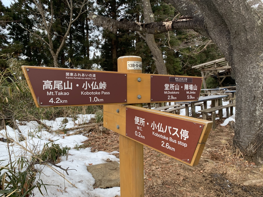 小仏城山を目指す。先週降った雪がかなり残っている。早朝のためシャーベット状に凍っているのでザクザクと歩ける。ウォーキングシューズで来た事を後悔しつつ先に進む。早朝のため小仏城山にもまだほとんど人はいない。