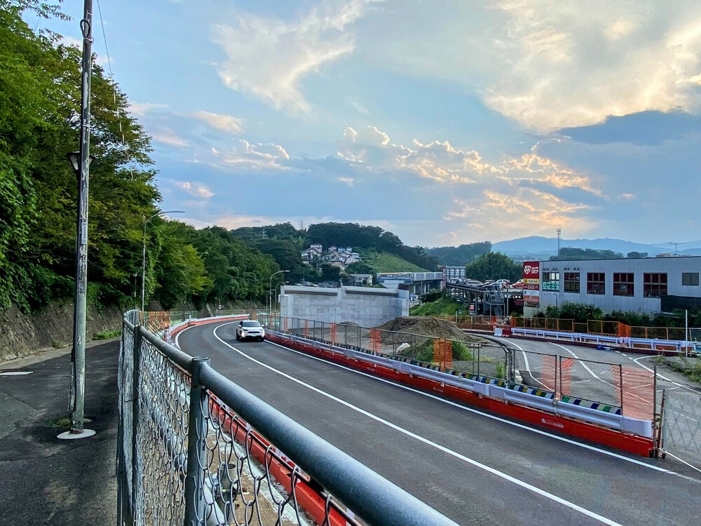 建設中のバイパスの脇の歩道を進むルートてす。ルート近くには、公園の中にあるオーバルコースでジョグもできます。