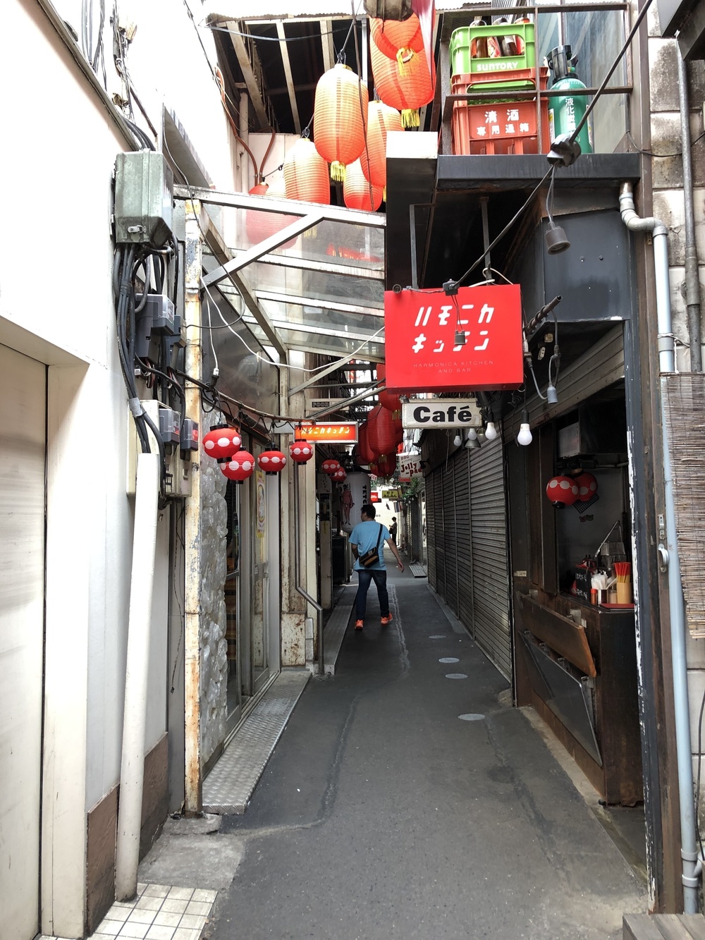 JR吉祥寺駅北口のコインロッカーに荷物を預け、ハモニカ横丁をすり抜けてダイヤ街へ。ハモニカ横丁は第二次世界大戦後の闇市にルーツがあり、現在も小さなお店が混在している、駅前ながらにしてディープなスポットになっています。