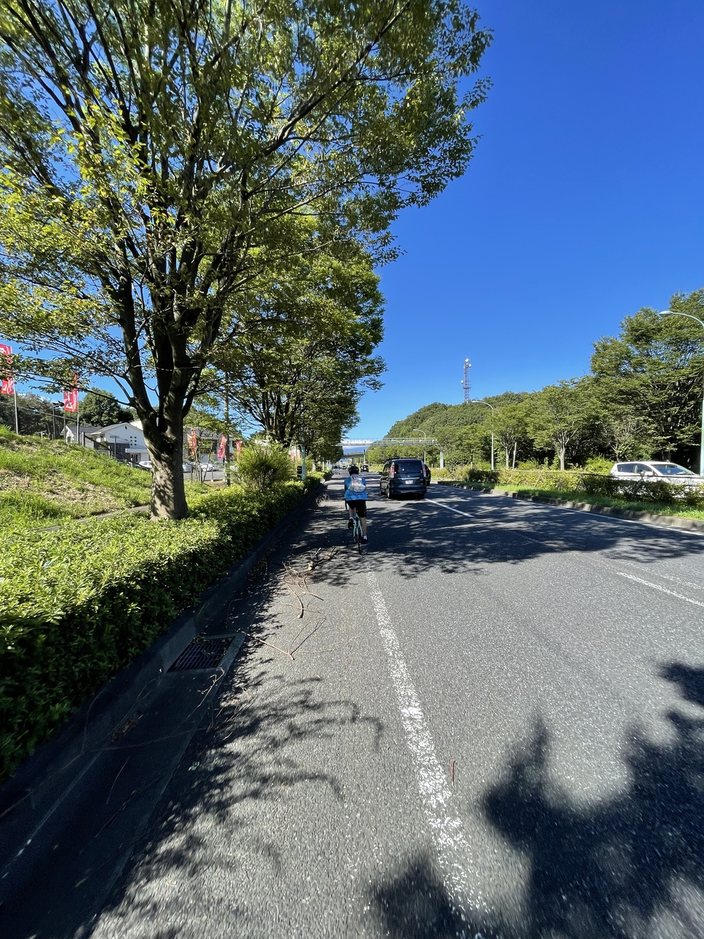 第2区間は府中駅から是政橋を通って稲城市の若葉台小学校まで。本番ではここから本気のロードレースが始まるんだなあと本番に想いを馳せました。是政橋を渡った後は稲城市に入ってかなり起伏のあるコースに変わり、ランで走るのはなかなか大変です。自転車はすごいスピードですが、ランだとなかなか進まない。。。