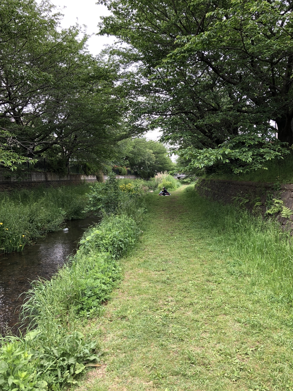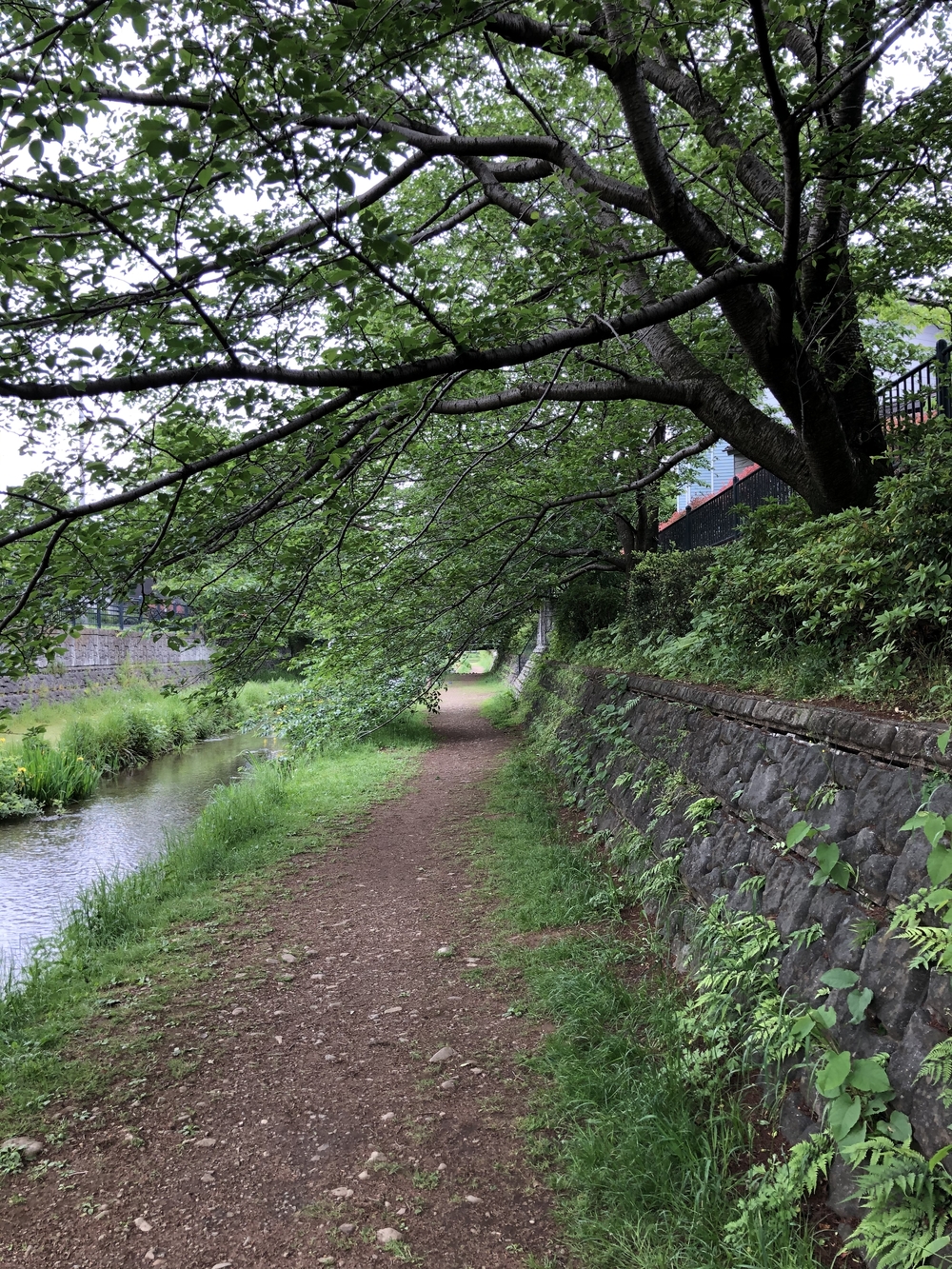 野川の上流(東京経済大学近く)から2.5キロ走り、野川公園で折り返す往復5キロのコースです。基本的に野川沿いの土の上を走れますが、前原小学校付近は迂回する必要があります。
