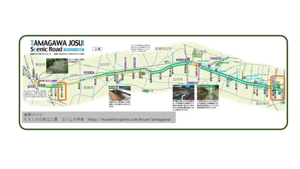 玉川上水沿いで緑に囲まれており、暑い夏も含め一年中、気持ちよく走れるコースです。小平グリーンロード(21km)の一部。