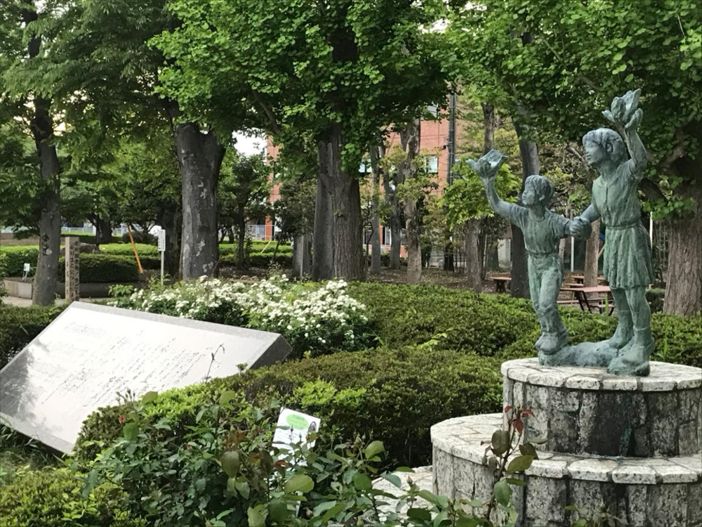 を見学できます。5月中旬の季節には、国立市役所の「平和の碑」前に真っ赤な「アンネの薔薇」が碑の前に咲いていて見頃です。