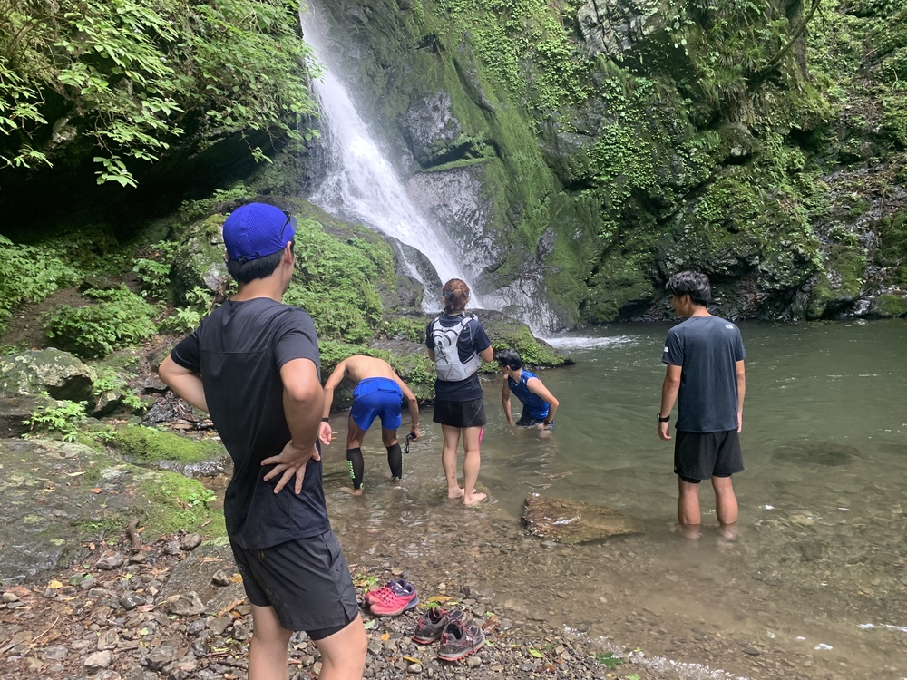 海沢三滝に着いたら、シューズを脱いで思いっきり飛び込んでください!ここまでの道のりの疲れが吹っ飛ぶ気持ち良さです!