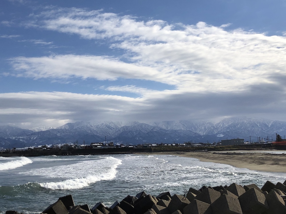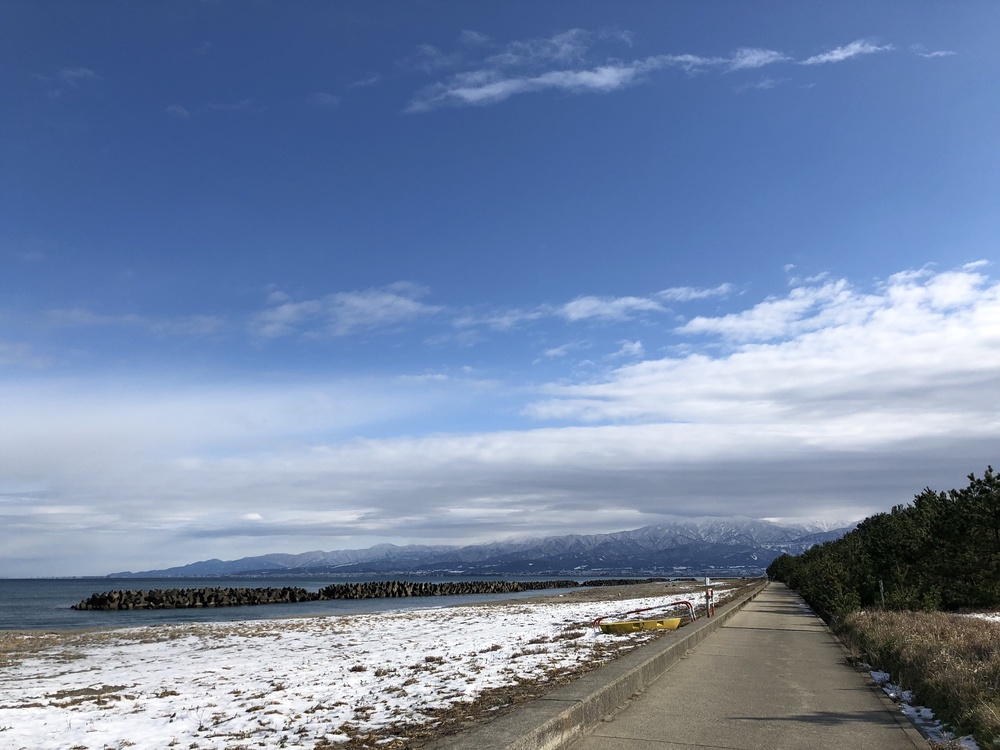 美しい立山連峰と日本海を感じながらのラン。信号ゼロ、交通量も少ないので、気持ちよく走れるコース。