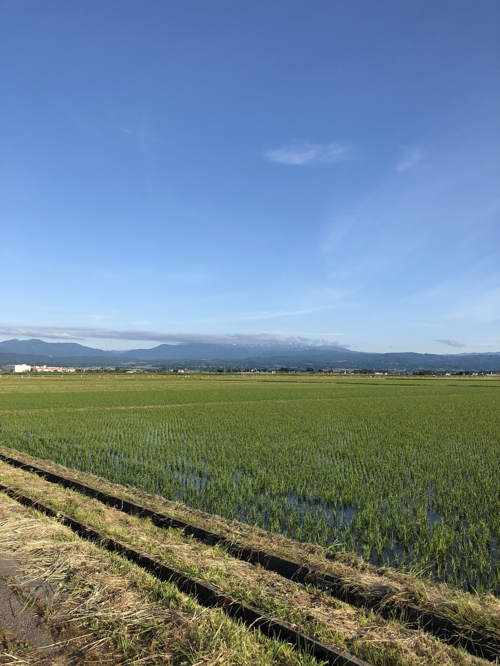 見渡す限りの田園風景。北は鳥海山、南は月山を眺め、視界を遮るものもなく、風を感じながら爽快なランができます!