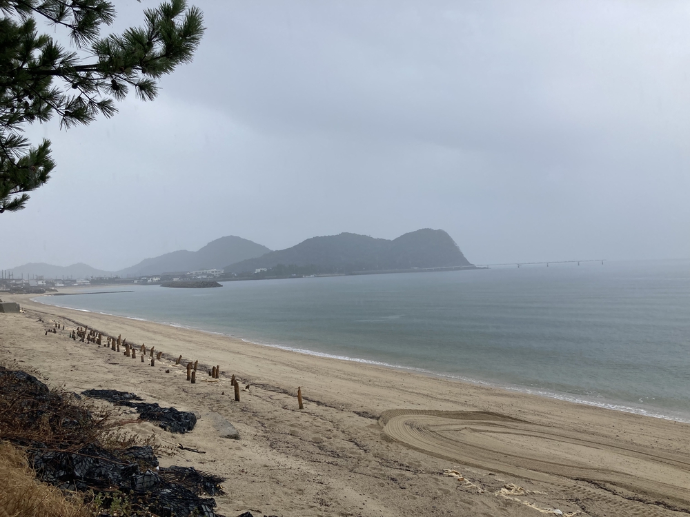山口県光市室積海岸沿い(国道188の一本海より)を見えそうで見えない海岸沿いを松林を右手に見ながらしお活バレルで有名なサウナ施設まで軽いランニング。