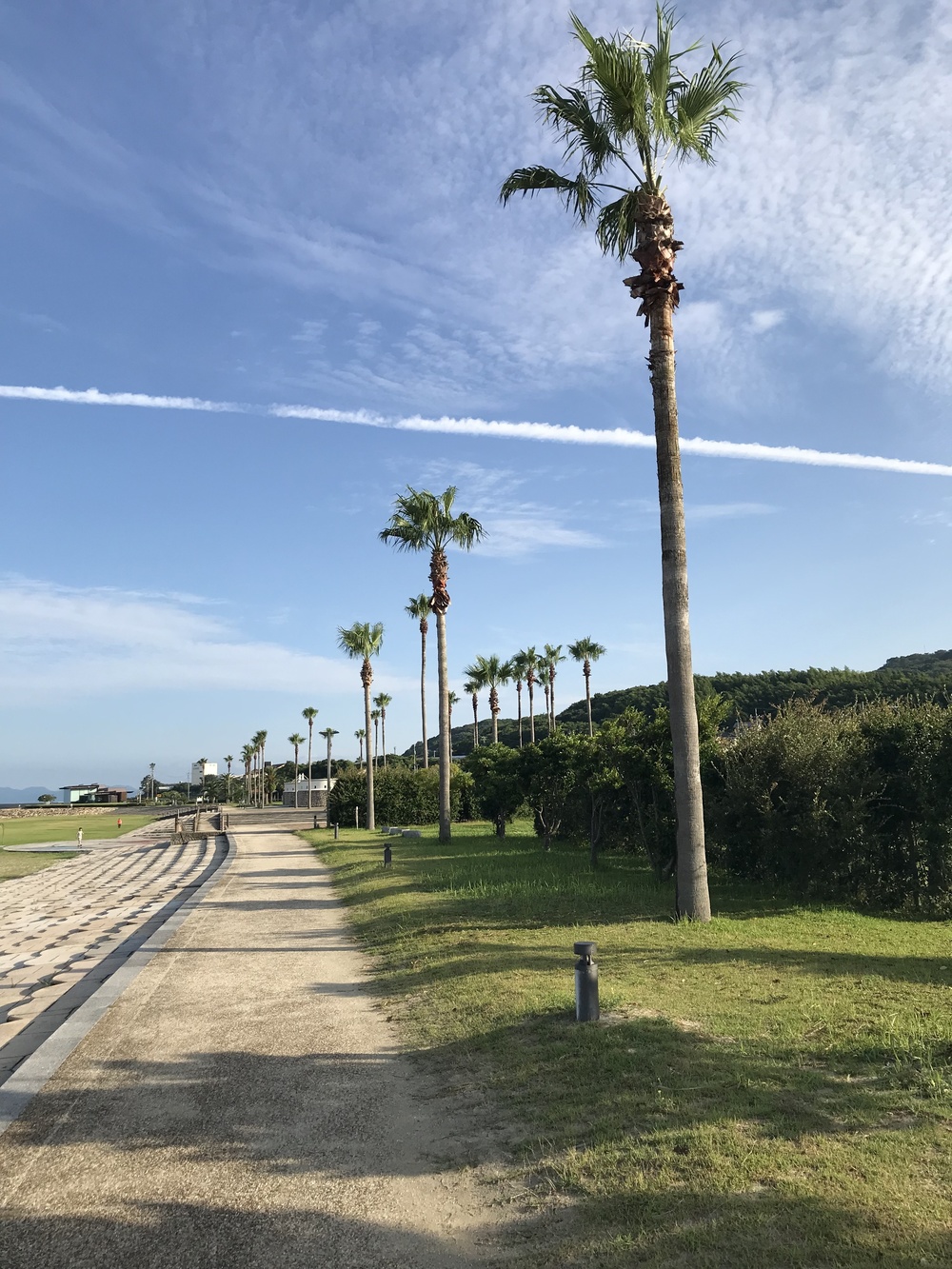 夕方はキレイな夕焼けを見ながら走ることもできます。ただ、街灯が少ないので、暗くなると要注意です。