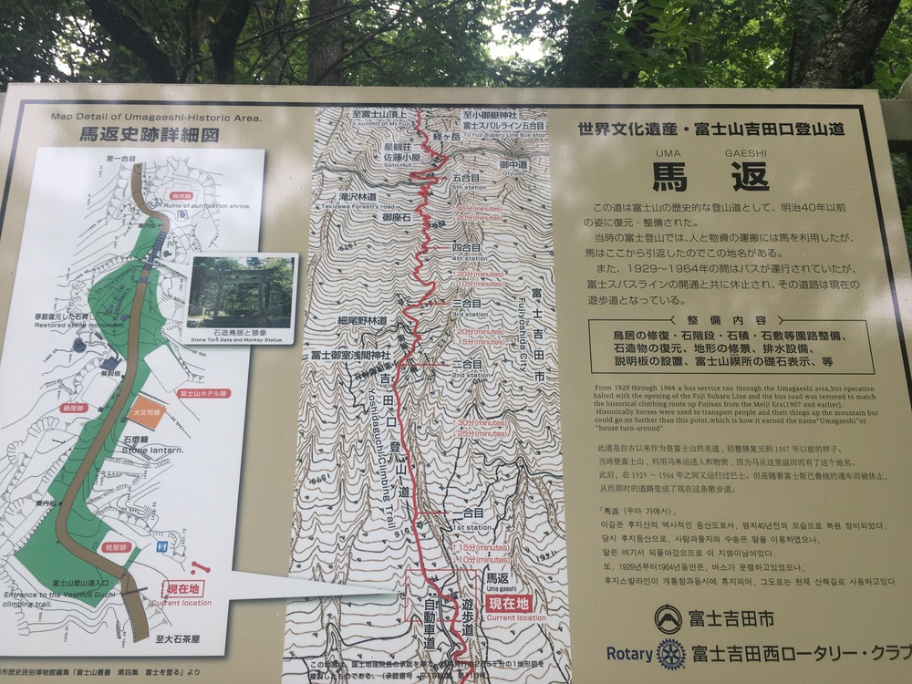 富士山駅⇒中の茶屋⇒馬返し⇒五合目⇒馬返し⇒中の茶屋