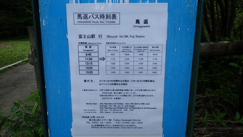 馬返(標高1,430m)→五合目 佐藤小屋(標高2,230m)までの移動距離4.3km、累積標高800mのコースです。富士山駅から馬返までのバスもありますが、本数が少ないため、どこかの駐車場に車を停めてそこをスタートにしても良いと思います。今回は時間が無かったので、僕は富士北麓公園駐車場(開場AM8:00)に車を停めて往復約19kmを走りました。