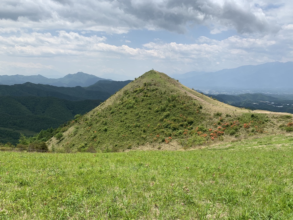 登り基調のトレイルを進む。飯盛山(めしもりやま)の名前の由来や写真を見て予備知識はあるものの、どんな山なのか想像しながら進む。途中、一瞬だけ視界が開け「あ~!これか!」と一見で分かる飯盛山が見えた。