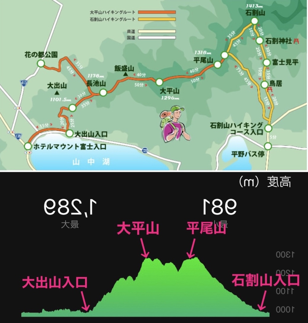 駐車場から約3.5kmで平尾山→約1.5kmで