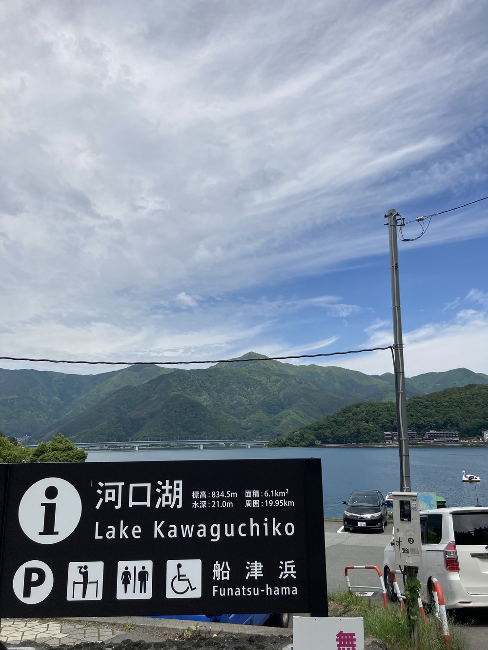 5/24(月)に河口湖一周(=約17〜18km)してきました!富士山を眺めながら湖畔を一周できるので、景色は申し分ないです(^^)信号も少なく、ほぼフラットなコースなのでとても走りやすいのも嬉しいです!歩行者用のコースも整備されており(一部ない区間もあり)、所々にマップもあるので迷う心配はありません。