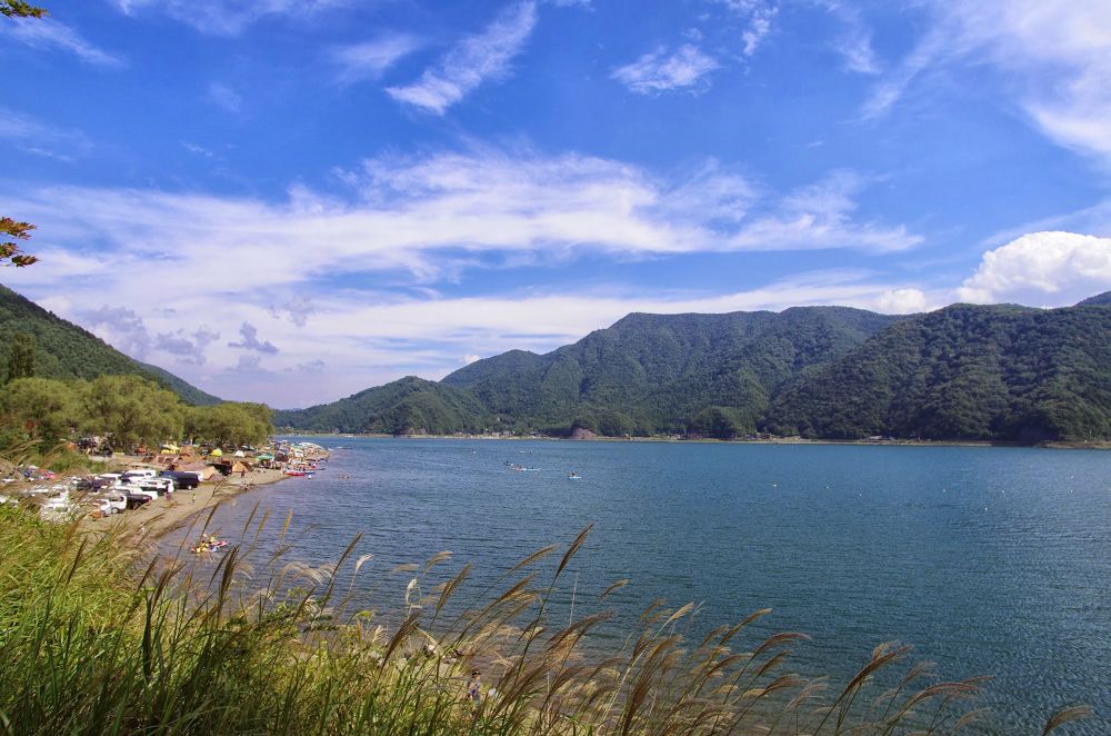 富士五湖の一つ「西湖」の1周約10kmの周回コース。1km毎に距離表示看板があります。