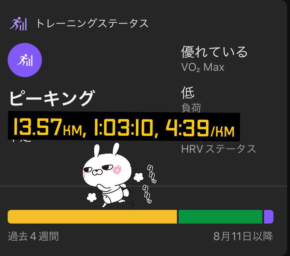 ガーミン先生のトレーニングステータスの基準がよく分からんけど、明日以降も変わったことせず、いつも通りに頑張りたいと思いまーす😇(笑)