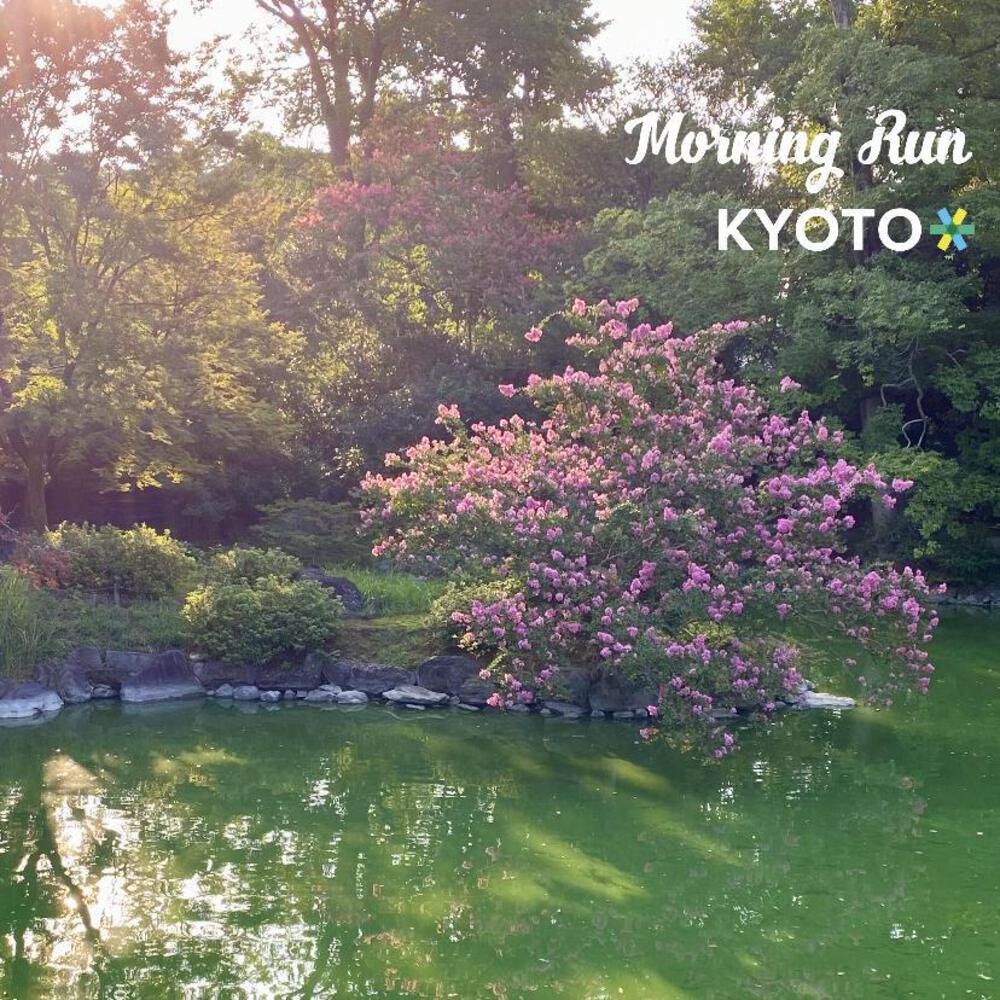 ダメージを残さない繋ぎのランニングにする為に、京都御苑内の砂利道や土の道を走って、着地衝撃を和げておきました。