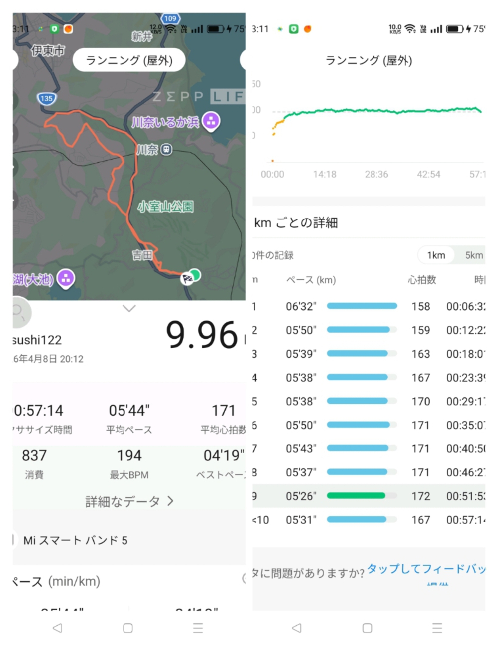 ホームコース10kmはずがちょこっと足りず😑