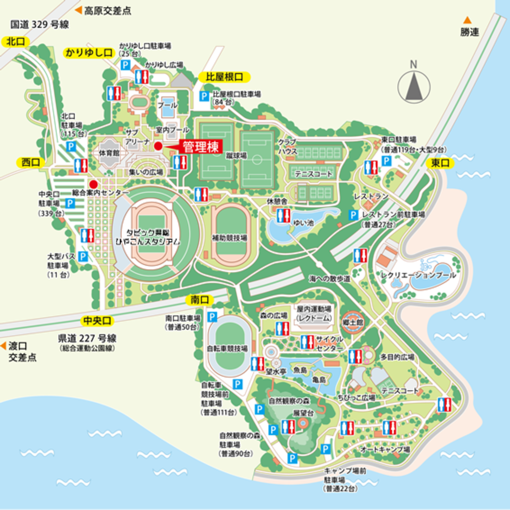 沖縄県の総合運動公園です。駐車場も広めで、シャワーも完備されています。