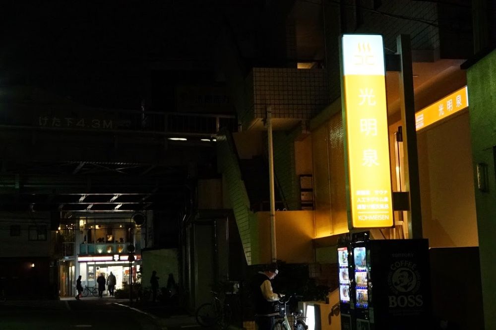 都内有数のデザイナーズ銭湯の光明泉です。中目黒駅から歩いてすぐ。