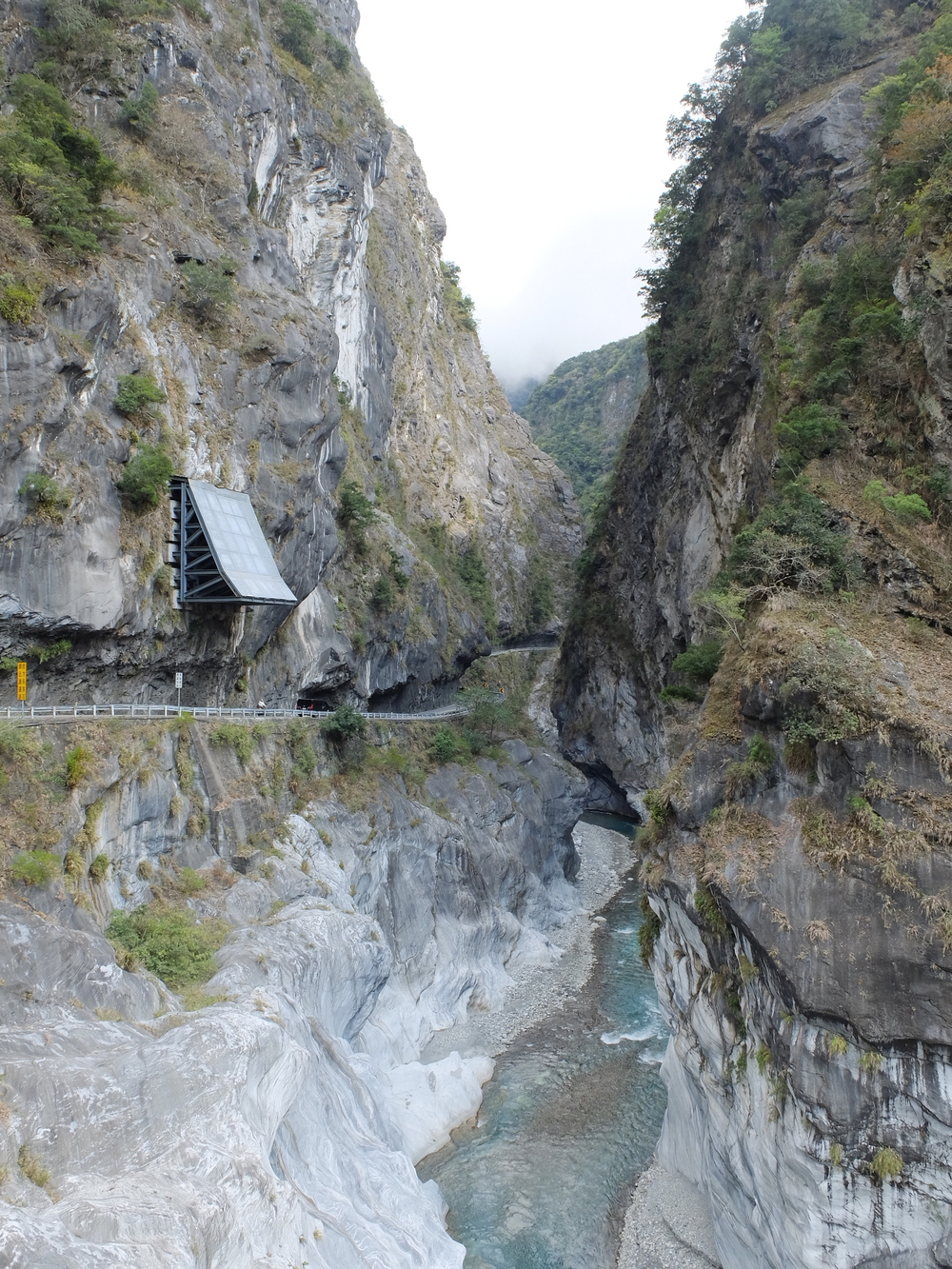 台湾第一級の観光名所、太魯閣(タロコ)峡谷を走ります。ほとんどの観光客は、観光バスやタクシーで訪れると思いますが、路線バスも概ね一時間ごとに走っています。 (終バスは早いので注意) 峡谷の最も見どころの区間、西側の「合流」バス停で降りて、東側の「渓畔」バス停で、次のバスに乗って街へ戻るというプランがおすすめです。だいたい8kmくらいです。