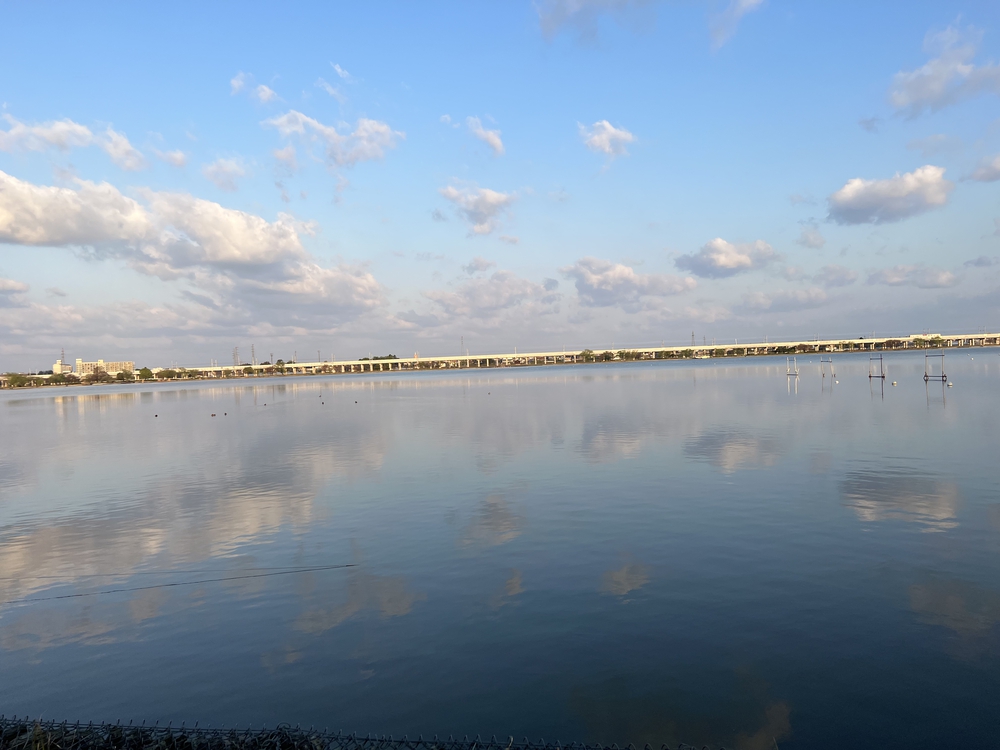 潟に沿って1周6.4km 起伏も少なく走りやすいルートです。 水面に空が映って幻想的な写真が撮れました。