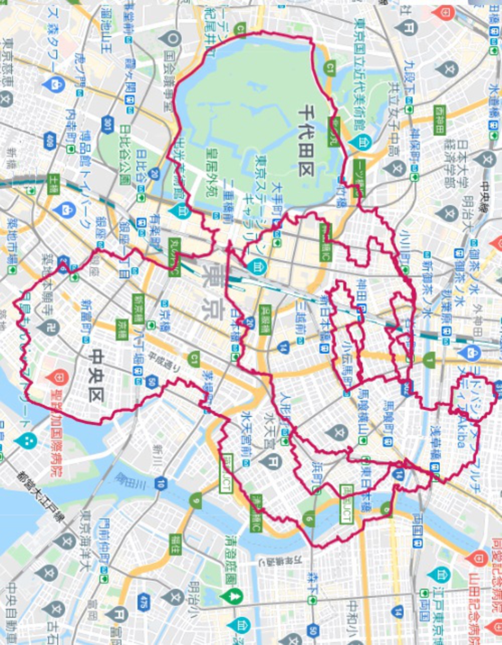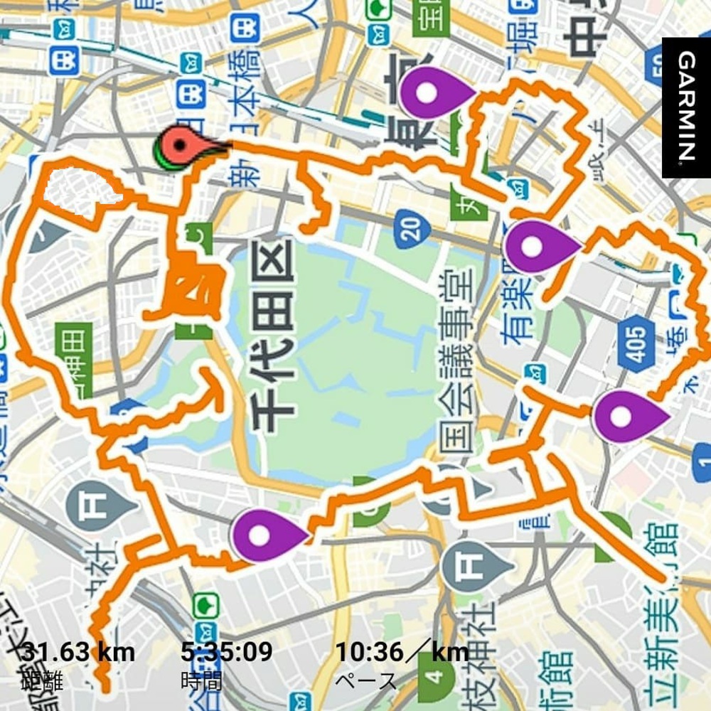 皇居近くのランステを利用し、ミッキーお絵描きラン。築地玉子焼きなどスイーツポイントいっぱい。