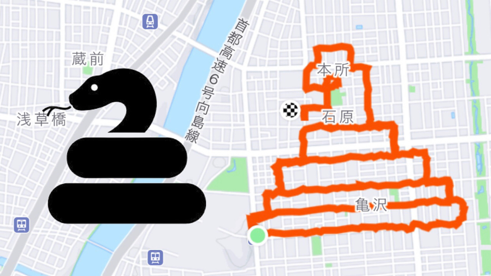 両国、錦糸町、本所吾妻橋周辺をマス目に沿ったシンプルなコース。距離も短く初心者向けです。