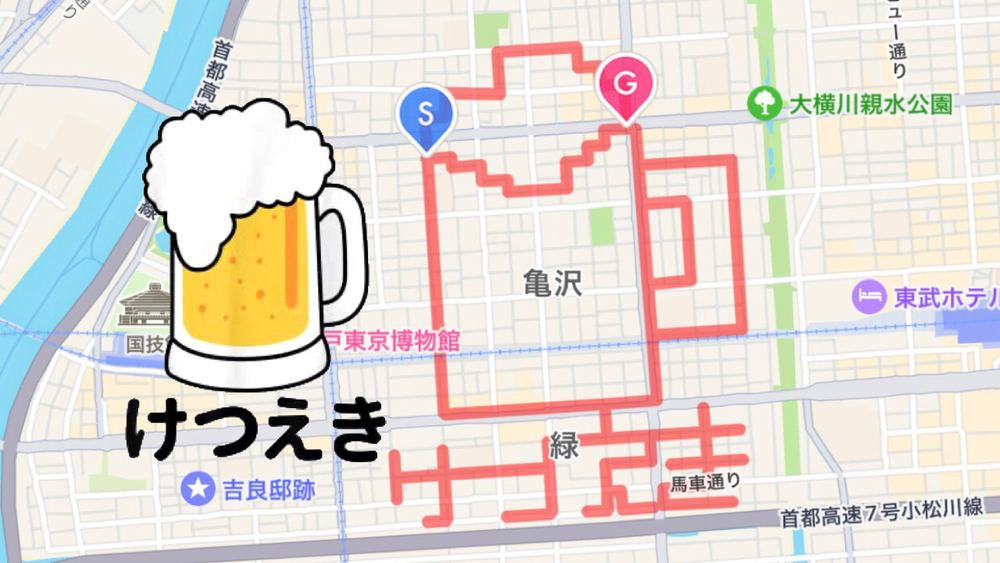 両国錦糸町間を縦に行ったり来たり、ビールを飲む前に是非走って欲しい初心者コースです。
