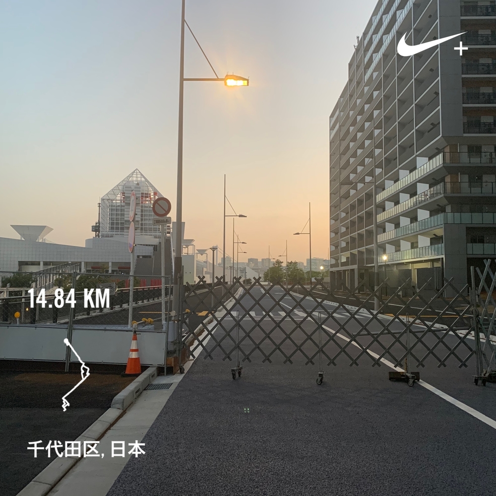 緊急事態宣言の影響で閉鎖されて誰もいない 春海のオリンピック選手村です。 今年の今しか走れない風景があります。