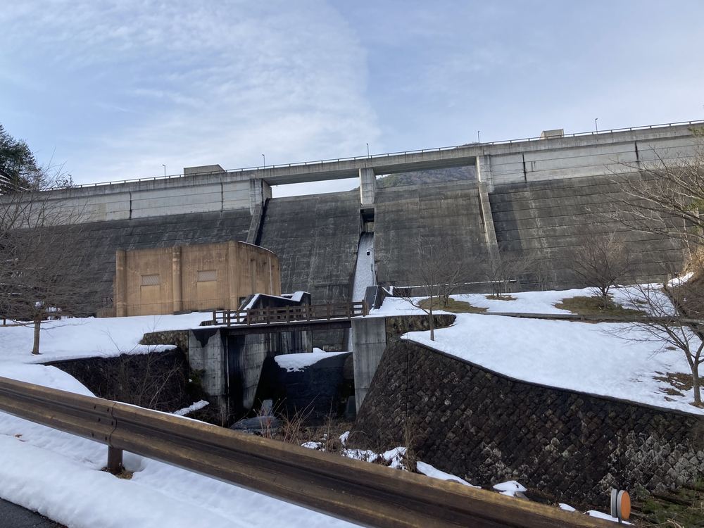 かかしを眺めながら、ダム湖を一周します。 左岸は県道なので車が時折来ますが、右岸は車も来さそうになく、走りやすいです。ただ、山影に入るので、夕方は少し冷えます。 まだ少し雪が残ってました。
