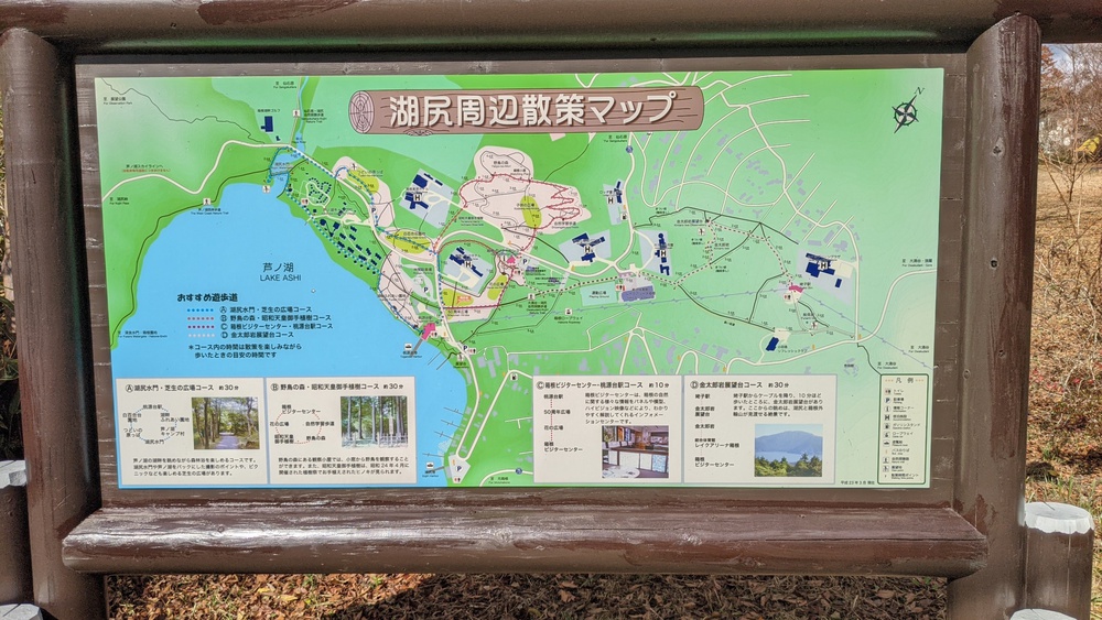 晩秋の箱根。桃源台ロープーウェイ至近(湖尻)の箱根レイクホテル発着で芦ノ湖を反時計回りで周回してきました。前半は芦ノ湖西岸遊歩道を後半は、メジャー観光地で整備済みロードコースになるので手軽に楽しめると思ってましたが…前半はハードなダート続きます。足場が悪い場所や藪が生い茂り細い道幅で走れないところあります。更にコースが崩れ迂回箇所もありますので都度案内に沿って進みました。この遊歩道約11kmとの事ですがアップダウンも結構あり、私はかなり長く感じ気軽にトライは少し危険かなと思いました。お店やトイレは遊歩道途中はありませんが、箱根園地から先はその不安はなくなります。箱根大自然と文明社会のギャップを肌で感じることができます。次はもう少し暖かい時期に行きたいですね。