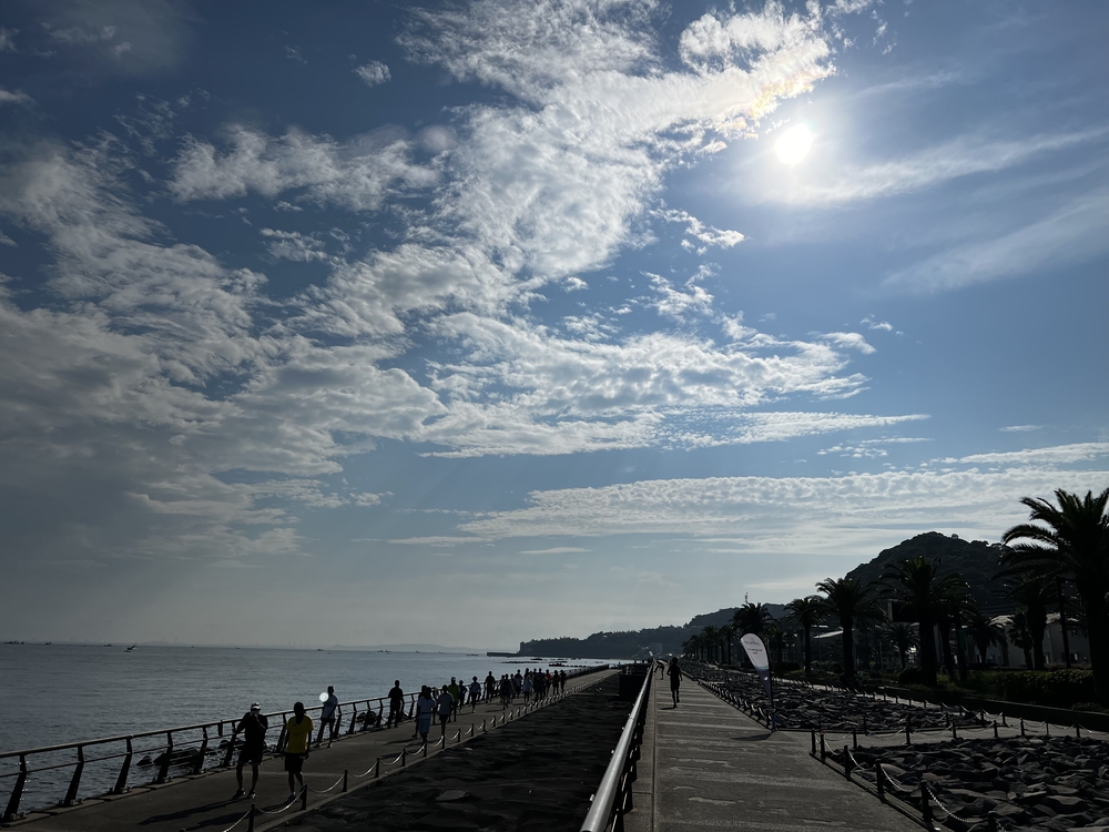 海を見ながらの周回コース。2周で5kmになります。 天気がよければ富士山もみえる気持ちのいいコース。マボチョクのスピードコースです。 このコースは馬堀海岸parkrunのコースにもなっています。
