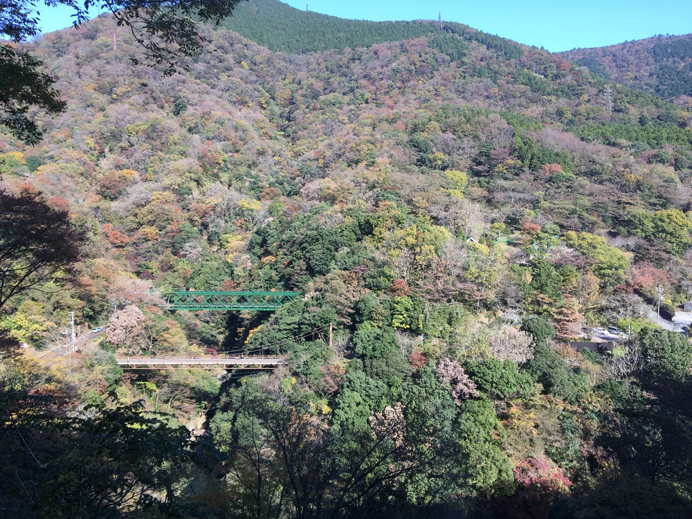 箱根登山バス仙石原営業所 (標高 648m)から県道 75 号を金時山に見守られて出発。今回唯一の平坦区間のススキ原を過ぎると登りが始まります。794m の峠を超えて芦ノ湖・桃源台/湖尻に (728m) 到着。 湖尻から再び 75 号を少し登り、県道 735 号に分岐。気持ち良い雑木林に囲まれ時折頭上をロープウェイのゴンドラが通過する。734 号への分岐は直進し、今回の最高地点の大涌谷へ (1,042m)。残念ながら富士山山頂は雲の中。箱根外輪山の北半分は全て視界の中。西側には芦ノ湖、駿河湾、愛鷹山も。山影に詳しい人なら晴れてさえいれば南や中央アルプスの山も見つけられると思います。 大涌谷から 735 号、734 号をジェットコースターの様に一気に下って強羅へ。平日なので交通量少なく気持ち良く飛ばせました。但し早雲山駅後のケーブルカーの線路に沿った道は急すぎて走るのは怖いです。やや遠回りになりますが 734 号→国道 1 号→小涌谷で 723 号を使って強羅に行く方が楽しく走れそう。 強羅では「強羅ブリューワリー」で地ビール。箱根登山電車で箱根湯本に下り「やじきたの湯」で汗を流す。ここはランステ対応可能とのことで、次回からは身軽に走れそうです。