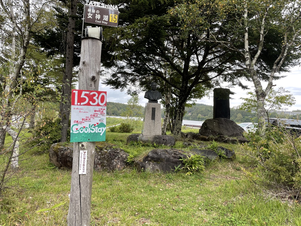 県道白樺湖小諸線の雨境峠 (標高 1,580m) にある 1,500m/周のクレイのクロカンコース。適度な傾斜あり。冷雨の降る平日ということもあり広大な敷地を独り占め。牧場の牛と馬が応援してくれました。 事前に女神湖体育館内の事務所で使用許可をもらう。案内板には料金が書いてありましたが無料でした。コースそばに駐車場もトイレもあります。私は女神湖 (1,530m) から 2km 程の気持ち良い坂を上がりました。 一部雨で両面の土が流され路面が荒れている場所があるのは残念。こうした荒れもクロカンの面白さでしょうが、折角の絶景の中を走るので足元を気にしたくないとも思いました。使用料有料で良いからメンテの頻度を上げて欲しい。 峠を小諸側に少し下った所に「牛乳専科もうもう」という売店あり。牧場のミルクを使ったソフトクリーム絶品ですので是非お立ち寄り下さい。