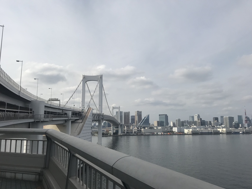 レインボーブリッジから豊洲新市場周りの水辺、新しく開通した環状2号線を通ります