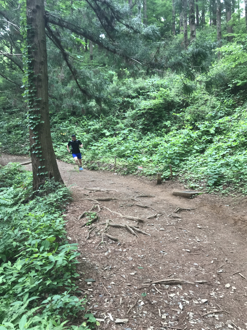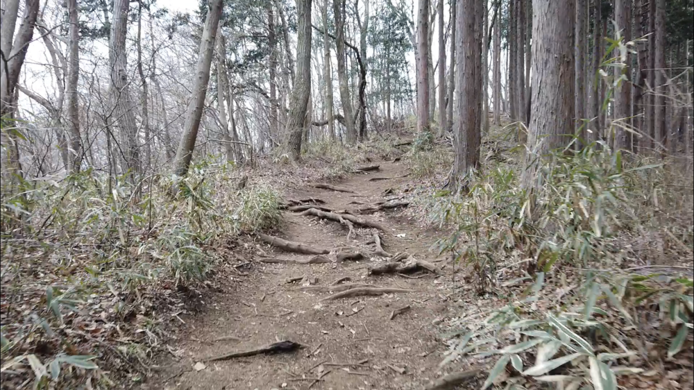 藤野駅から陣馬山→ 景信山→高尾山 コース 木の根や石に気を付けながら、登りや下りを走るのを楽しむことができる