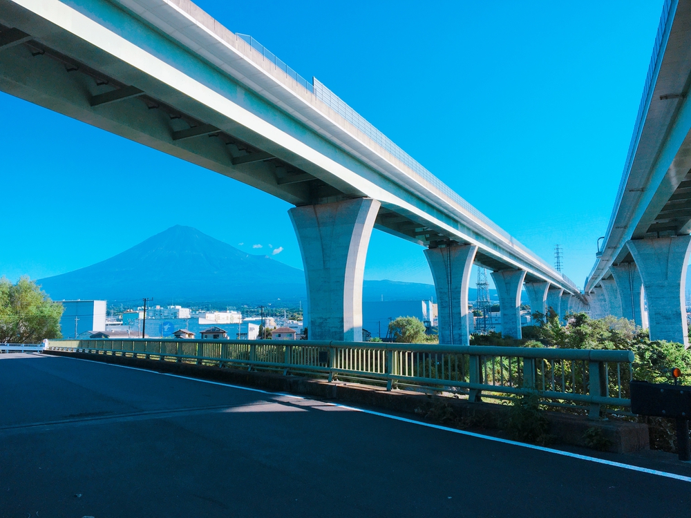 富士山と潤井川、そして新東名を通るコース。