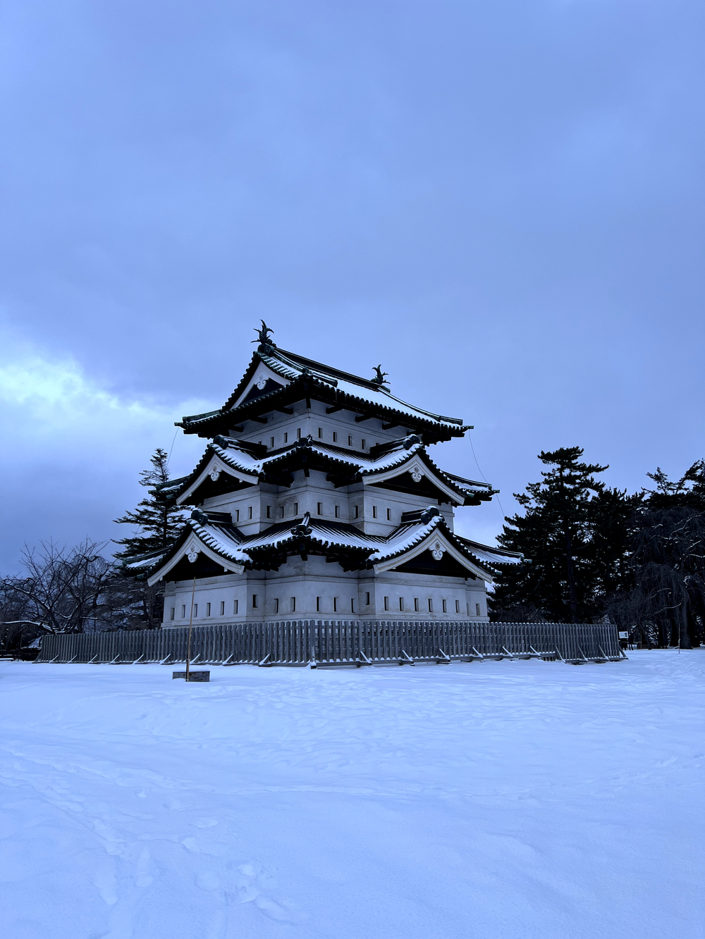 弘前駅〜土手町商店街〜東門口〜中央高校口〜北門口〜一陽橋口〜春陽橋口〜桜のトンネル口〜市民会館口〜追手門口〜杉の大橋〜南内門〜二の丸〜賀田橋〜四の丸〜護国神社〜賀田橋〜鷹丘橋〜本丸〜天守〜下乗橋〜追手門〜五重塔〜最勝院〜吉井酒造煉瓦倉庫〜弘前駅 吹雪の止んだ早朝。皮膚が締まる研ぎ澄まされた冷気の中の白銀ラン。ふかふかの新雪の上は踏み締める感覚快適。弘前公園の外周から内周それぞれ周回の後、五重塔まで足を伸ばして弘前駅戻りでゴール。