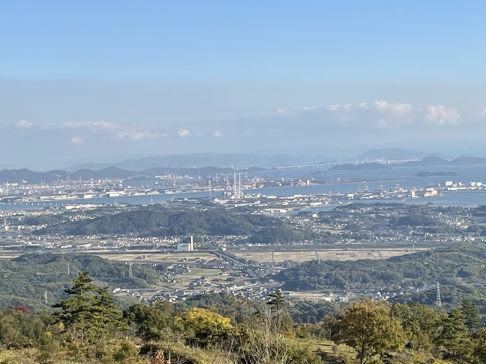 前半平地5km後半5kmはずっと登りの片道10km 遙照山の景色はとても綺麗です。 瀬戸大橋が見えます。