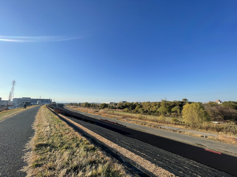 信号は少ない、河岸で冬の太陽を浴びて走る