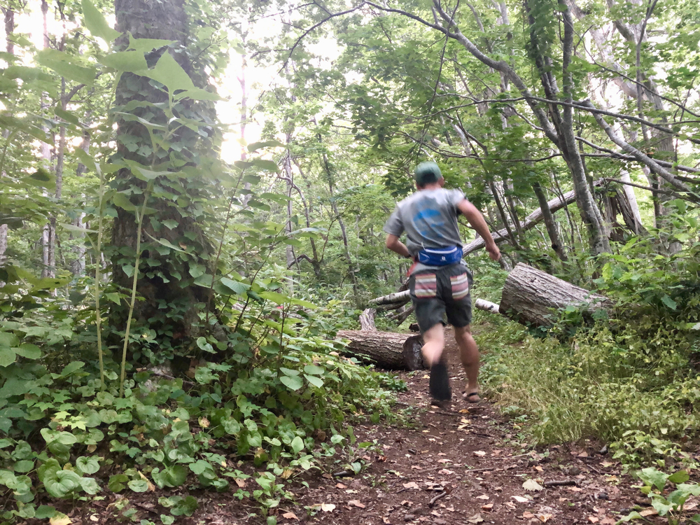 ニセコへ行くと、やれアンヌプリだ羊蹄山だと気持ちが向いてしまいますが、ガシガシ走るにはチョット(かなり)敷居が高すぎます。そんなあなたへお勧めしたいのは、羊蹄山の比羅夫登山口(倶知安登山口)のすぐ近く「半月湖」です。周囲2kmくらいの小さなカルデラ湖外輪をガシガシ走ることができます。カルデラ外輪から湖畔へ降りるルートを含めると、1周3kmくらいで、こまかなアップダウンがありますが累積標高は130mくらいです。グリーンシーズンだと駐車場のトイレと水飲み場が使えるので、何周でも走ることができます。54周くらいすると100mile、D+7,000mくらいです。 途中、昔の作業道に合流してから再びトレイルに戻る箇所と、羊蹄山比羅夫登山口に通じる道路に一旦出てからトレイルに戻る箇所がありますが案内表示がありますので、悪天候や夜間でもなければ迷う心配はありません。ただし、時期によっては笹が濃い箇所もありますが、ガシガシ走れるトレイルです。