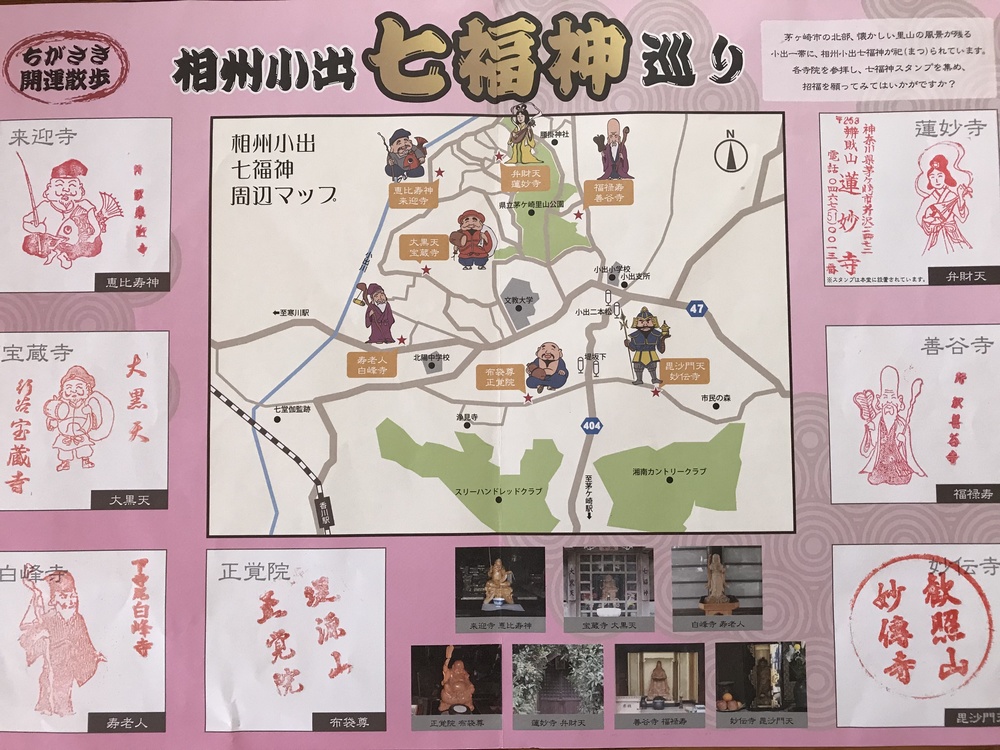 茅ヶ崎といえば湘南海岸のイメージですが、北部には丘陵地帯が広がっています。里山の中にある七福神を巡るランニングコースです。スタンプカードは茅ヶ崎駅観光案内所や各寺院にあります。
