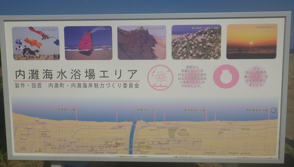 内灘海岸入口WC付近に車を停めて、その辺を起点に5㎞の周回コースです。井戸水なので飲めませんが、水道で冷却できます。何よりアスファルトばかり走って足周りに違和感がある方にお勧めです。砂浜って言っても車も入れるので踏み固められてるし、まあまあ走り易い。 近くのスーパーで飲食品も手に入るし、帰りはスーパー銭湯で汗も流せて良いですよ。