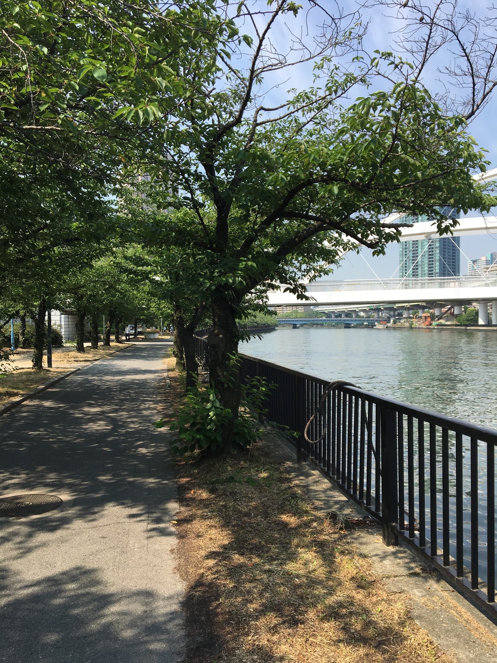 大川は淀川から分岐し、大阪城のすぐ近くを流れます。大川沿いは、公園が多く、木陰の中気持ちよく走れます。大阪城から淀川まで約4km、往復8kmなので、大阪城周り1週約5kmと淀川沿いを足したりして距離を調整できます。今回はJR大阪環状線の桜ノ宮駅付近のビジネスホテルに宿泊したのでそこからのスタートですが、桜ノ宮駅はロッカーなどない小さい駅なので、大阪城付近にたくさんあるランステや銭湯を活用されるのがよいと思います。 車であれば、桜ノ宮駅付近のコインパーク、淀川河川公園の駐車場があります。