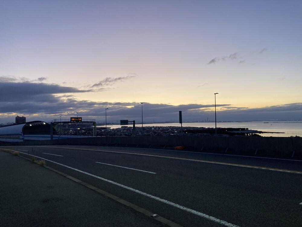 阪神芦屋から芦屋川沿い、海岸堤防沿いに深江大橋へ。東灘芦屋大橋を東向きに登ると壁のようですが、日の出ランにいいコースです。元旦は初日の出目当ての人だかり。一気に下り、湾岸線側道から夙川河口、夙川沿いに阪神香櫨園へ。