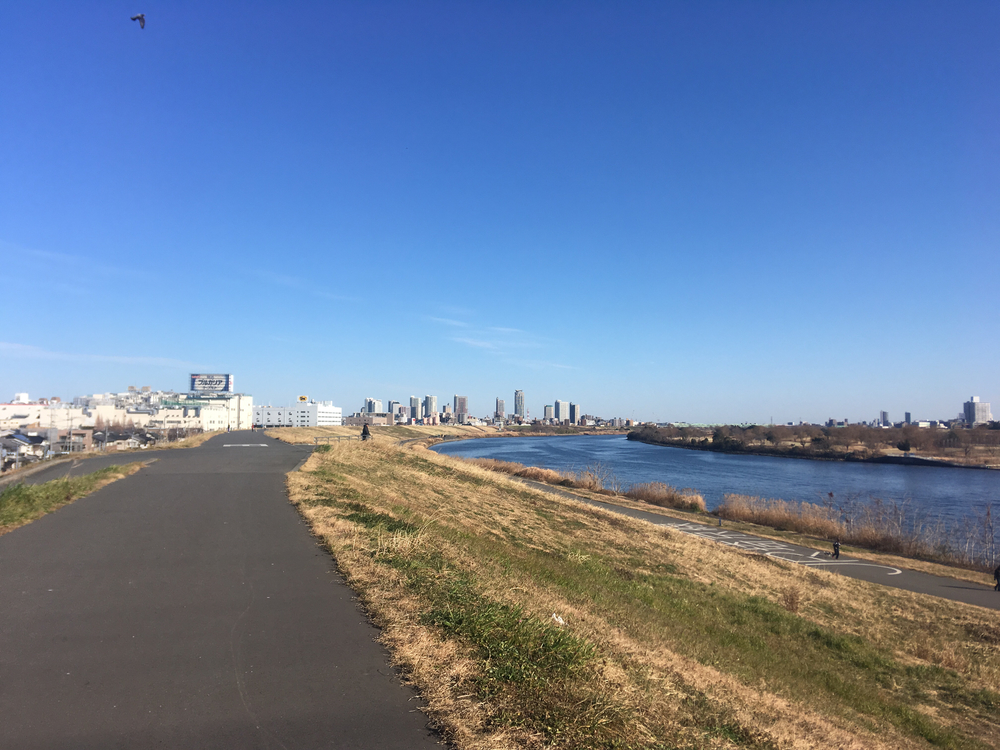 北千住駅の丸井2Fのロッカーに荷物を預けて、そこから荒川沿いへ。 上道を走ると、お天気が良ければ富士山が見える! 往路は荒川の南側を15kmほど緩やかに上り、風は向かい風。 東北新幹線の高架先の橋を渡って、荒川の北側=復路へ。その橋が東京都と埼玉県の県境です。 復路は緩やかに下り、風は追い風になります。荒川を右手に走ると、正面に立派な建物、東京拘置所が見えますが、残り5kmくらいになるとその建物が左手にあることが分かります。川がうねってるんですね。 30km後は駅の東口からすぐの梅の湯さんで温まりました。 梅の湯さんは、男湯と女湯が玄関から分かれているので、待ち合わせる場合は連絡を取り合って、湯冷めしませんように。