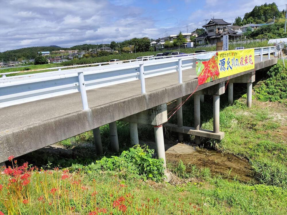 常陸太田の新名所「源氏川の彼岸花」を眺めながら走るコースです。 リーフレットによると彼岸花の期間以外でも様々な花を見られるみたいです。 山吹運動公園をスタート。南下してやまぶき橋をわたり遊歩道で北上します。 道中も花壇や家庭菜園の花々が咲いています。 遊歩道は「源氏川の彼岸花」が植えられている新宿橋まで続いています。 橋をわたり田んぼ道へ。 草を刈ったフカフカのあぜ道を桃源橋まで進んだ後、一般道でスタート地点まで川沿いを走ってゴールです。 近くには西山荘や西山公園などもあり、少し足を伸ばして観光するのもいいかもしれません。 お土産や休憩は、道の駅「ひたちおおた」が少し離れた場所にありますのでこちらに寄り道するのもいいかもしれません。