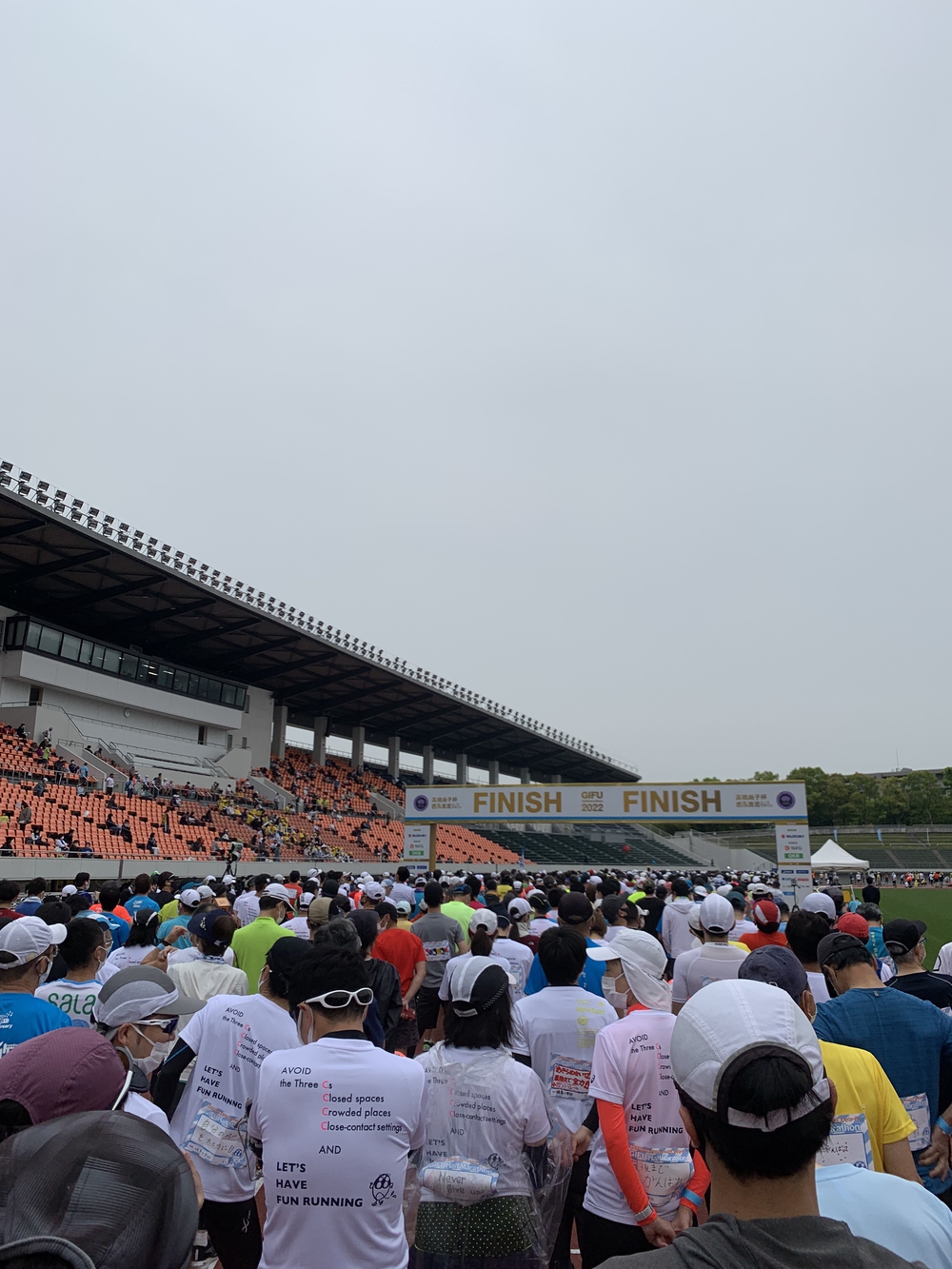 岐阜市で毎年4月第4日曜日に行われるハーフマラソンです。今年は3年ぶりの開催でした。 長良川競技場をスタート、岐阜駅まで行って折り返し、長良川沿いを走り、競技場に戻るコースです。 黄金の信長像、情緒のある川原町、清流長良川、山頂の岐阜城など、見どころ満載です。 ゴールではQちゃんが笑顔で出迎えてくれました(^^)